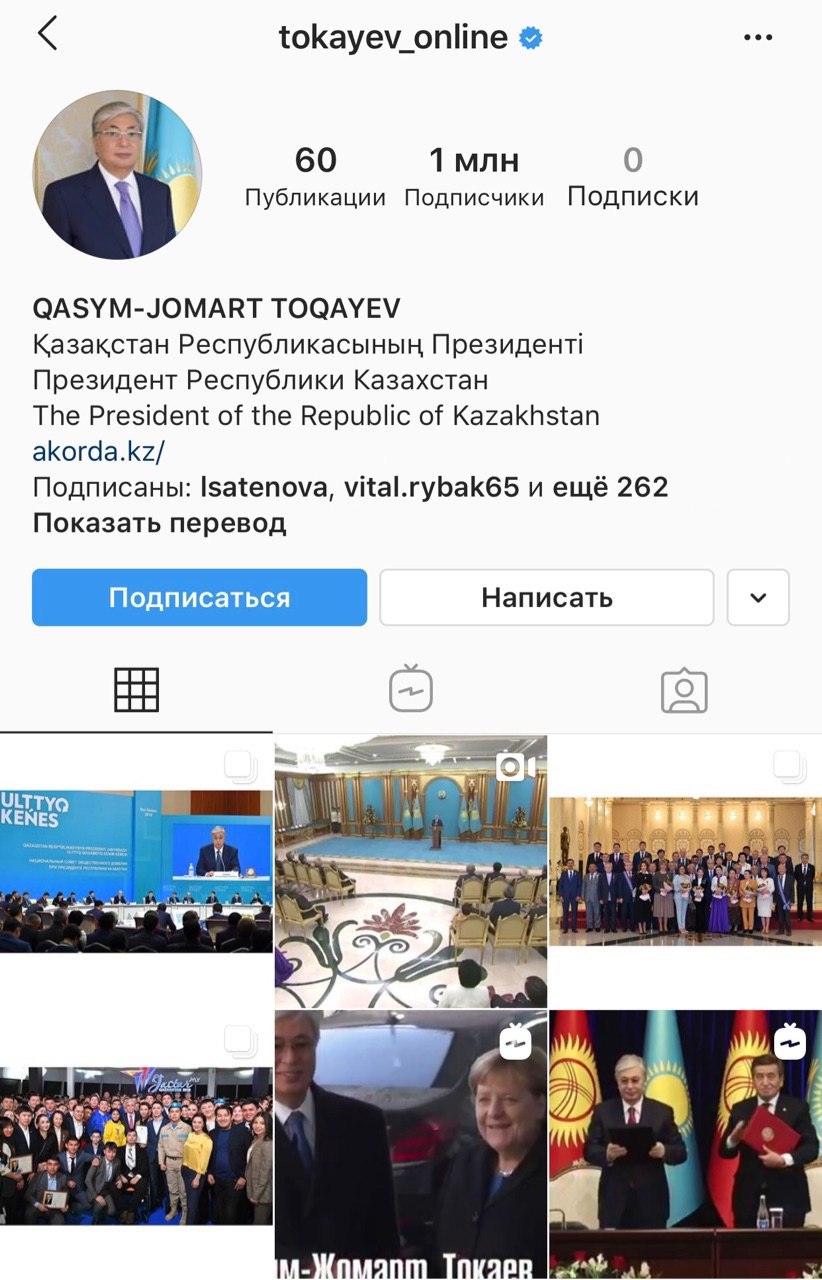 ‼️Токаев стал миллионером в Instagram по количеству подписчиков