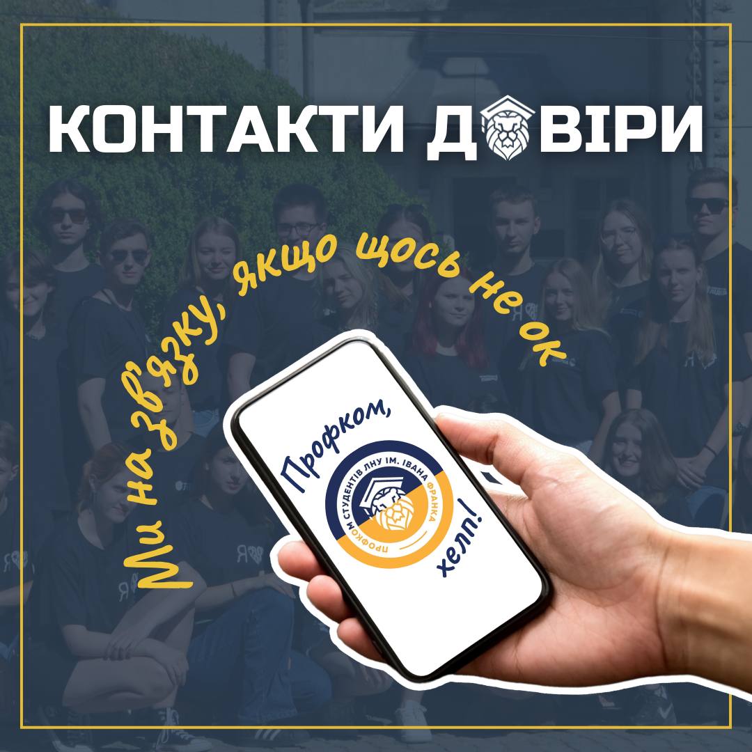 Також можеш написати лист на поштову скриньку helpline@lnu.edu.ua або на Центр підтримки Профкому студентів — @profkomlnu (Telegram) ✍️