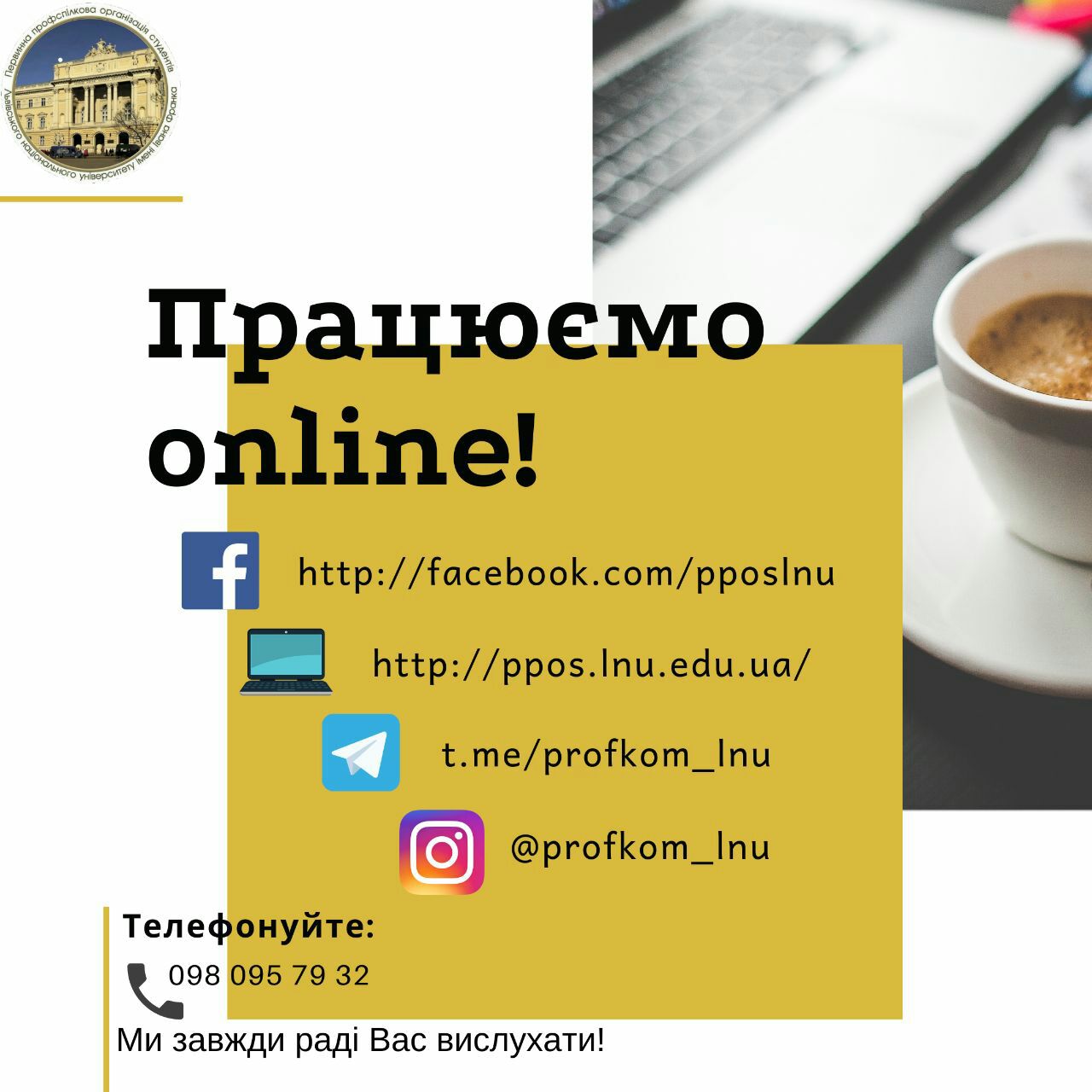 🌐 Профком студентів переходить на дистанційний режим роботи