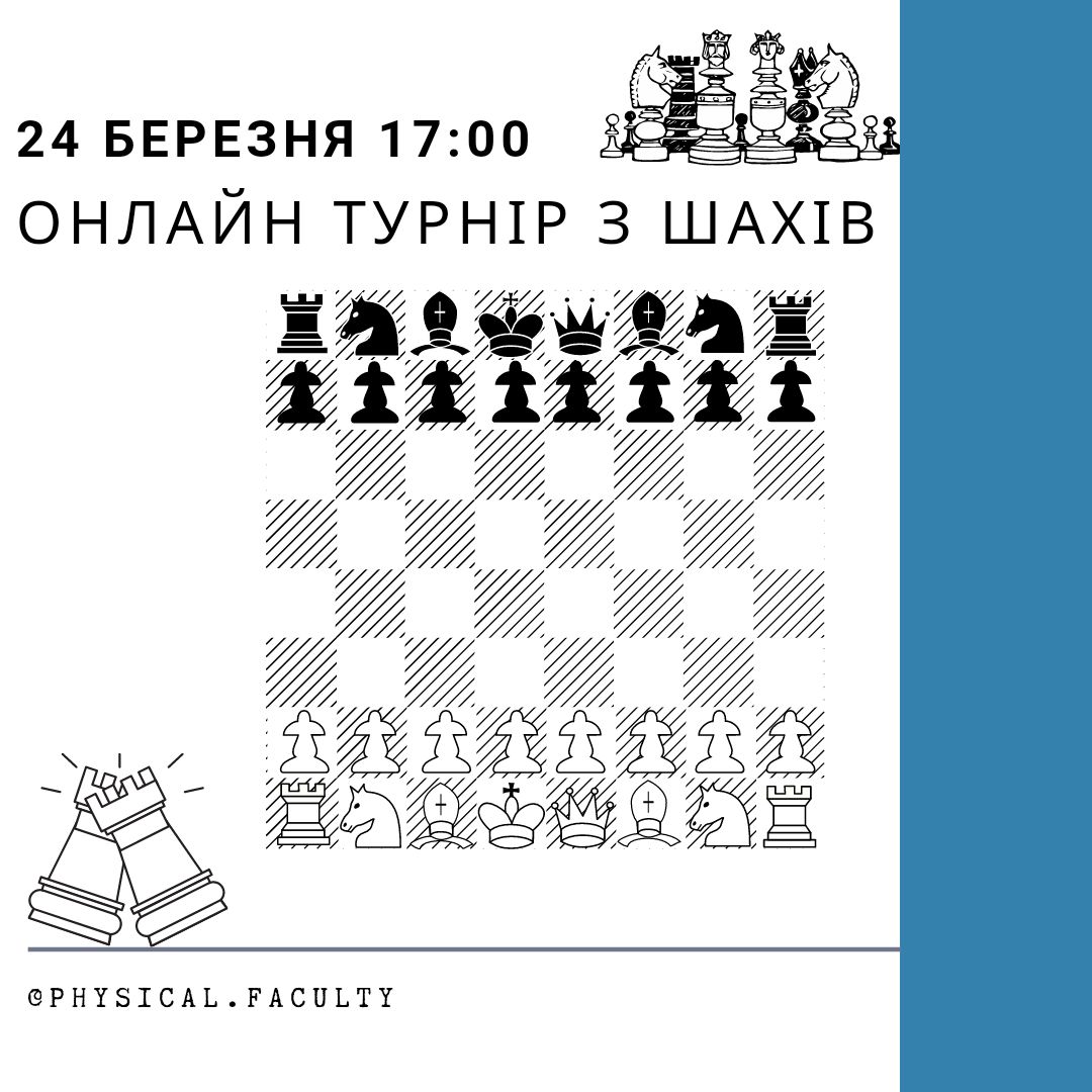 Хочемо вам повідомити,що 24 березня о 17:00 буде онлайн турнір з шахів♟