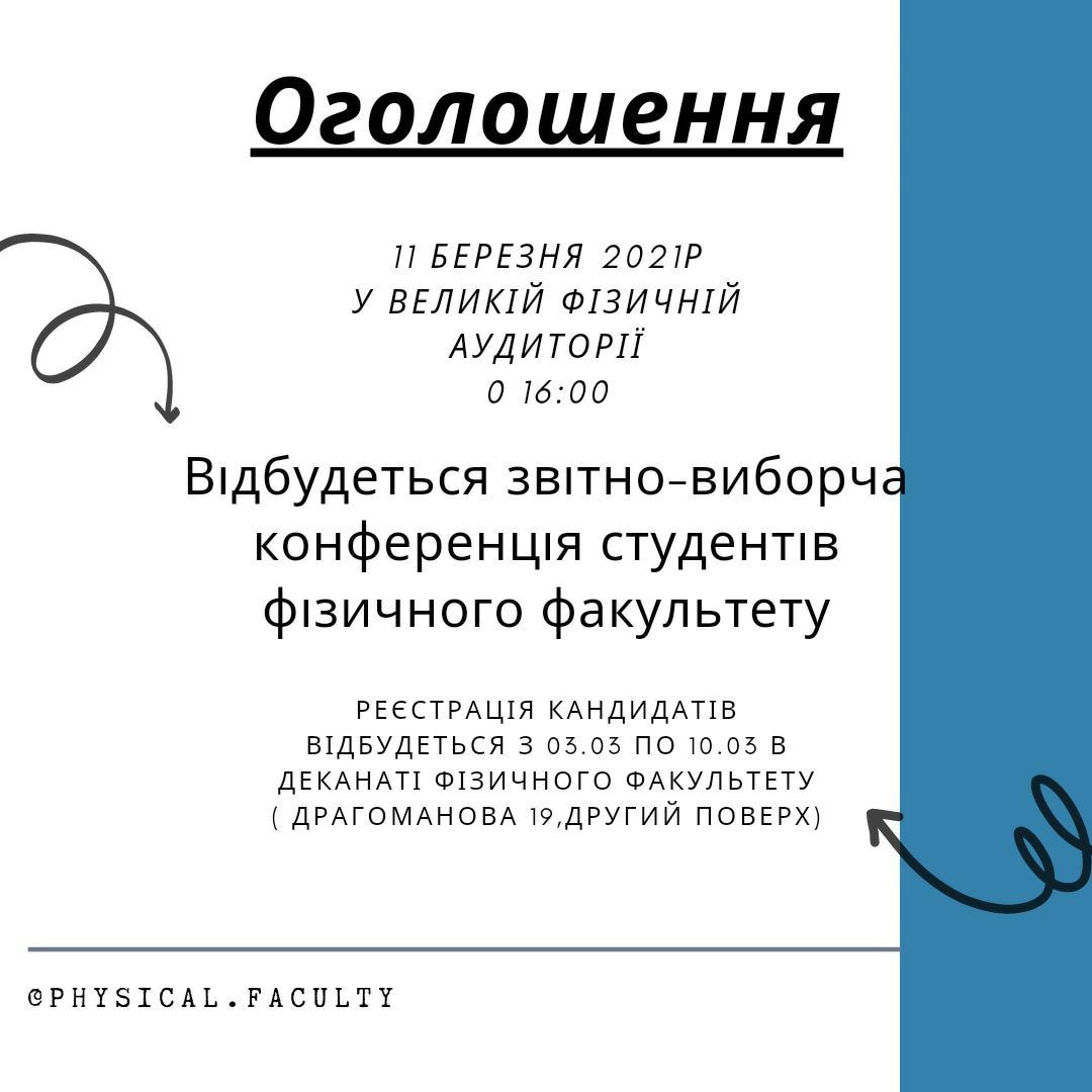 Відбудеться звітно-виборча конференція студентів фізичного факультету.