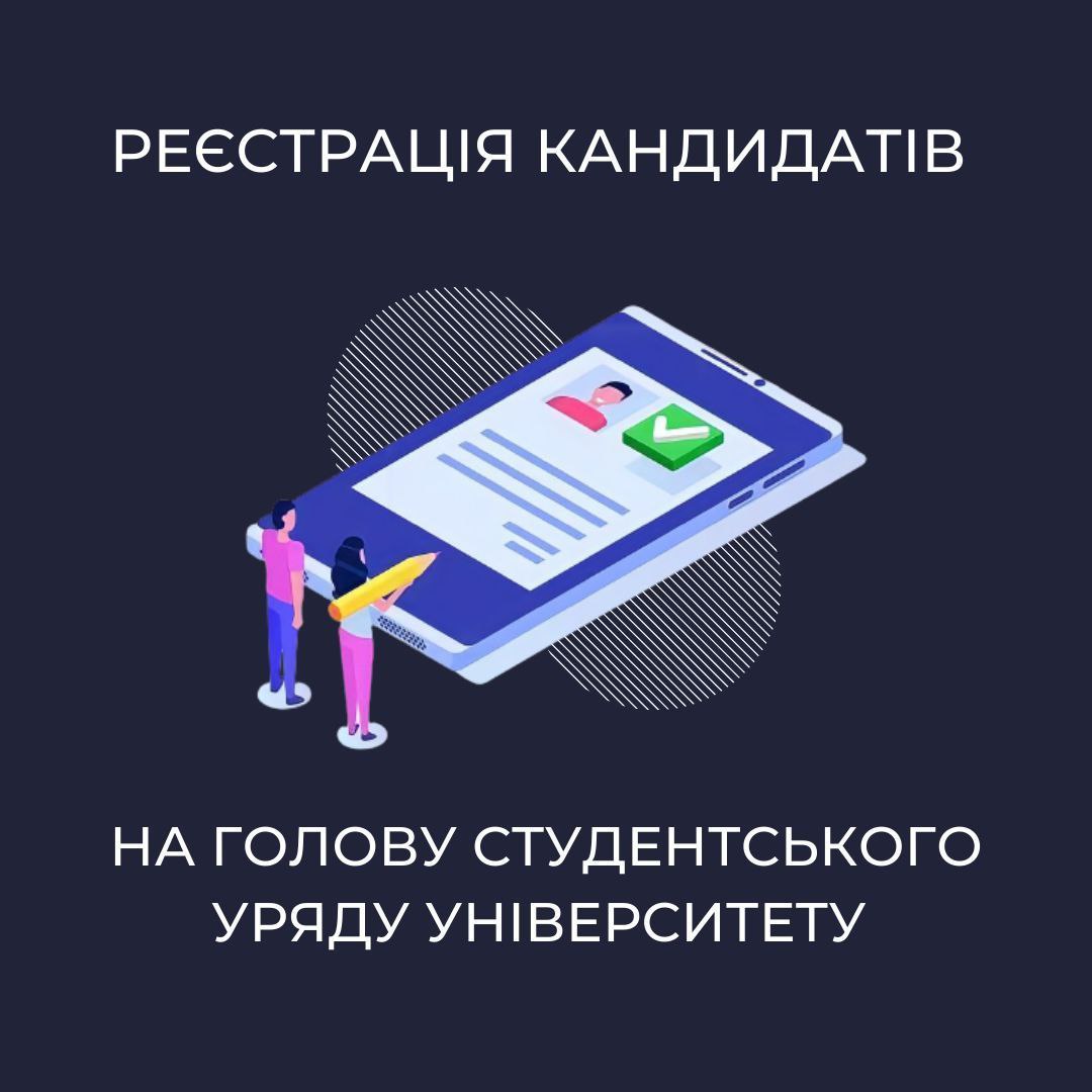 Поспішаємо вам повідомити, що 14 травня 2021 року о 18:01 реєстрація кандидатів на посаду Голови Студентського уряду успішно була завершена. На засіданні Студентської виборчої комісії Університету були розглянуті та затверджені усі реєстраційні заяви кандидатів на посаду Голови Студентського уряду. За рішенням СВКУ від 14 травня 2021 було зареєстровано двох кандидатів, а саме: