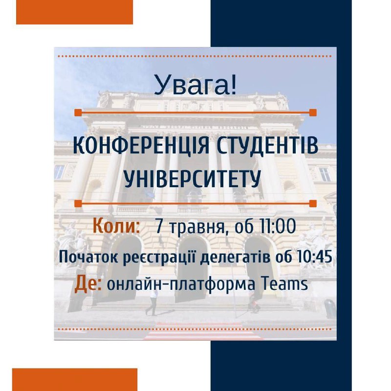 7 травня об 11:00 на онлайн-платформі Microsoft Teams відбудеться Конференція студентів Львівського національного університету імені Івана Франка.
