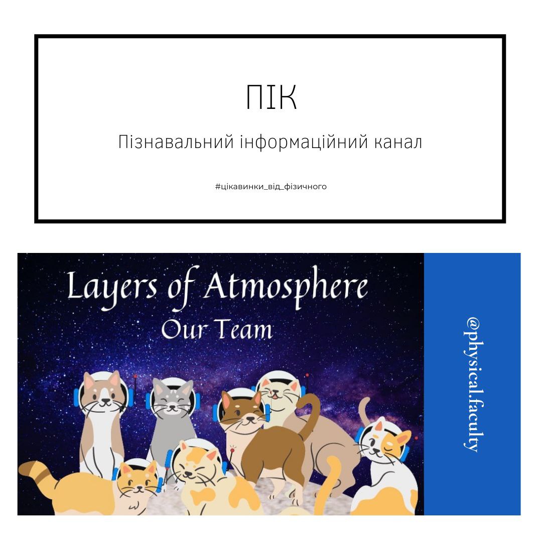 Сьогодні ми розкажемо Вам про пізнавальний інформаційний канал "Шари Атмосфери | Layers of Atmosphere" - ініціатива від наших студентів фізиків😋