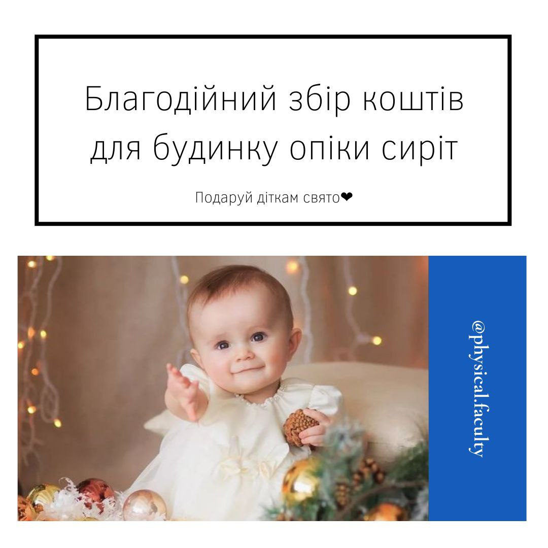 Студбюро фізичного факультету спільно з Профбюро студентів факультету педагогічної освіти організовуємо благодійний збір коштів для будинку опіки сиріт ім. св. Миколая.