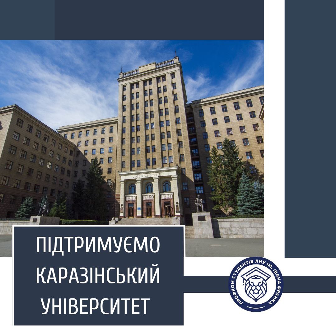 У важкий час війни, жахливих вбивств, безжального руйнування соціальної інфраструктури у Харкові Профком студентів Львівського національного університету прийняв рішення підтримати студентів, викладачів та працівників Харківського національного університету імені В.Н. Каразіна.