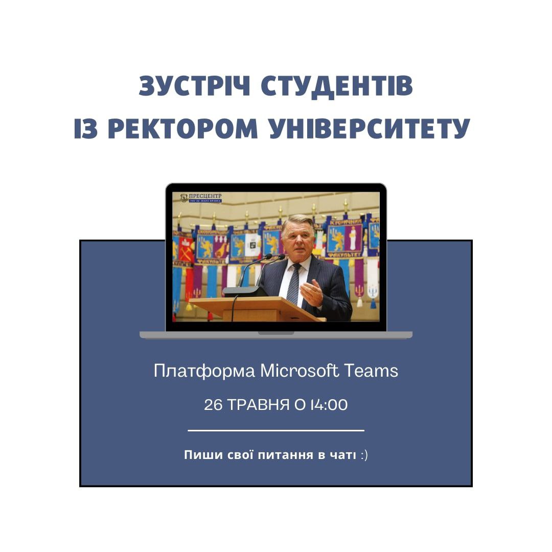 У цей четвер, 26 травня, о 14:00 відбудеться традиційна онлайн-зустріч Ректора Львівського національного університету імені Івана Франка, професора Володимира Мельника зі студентами.