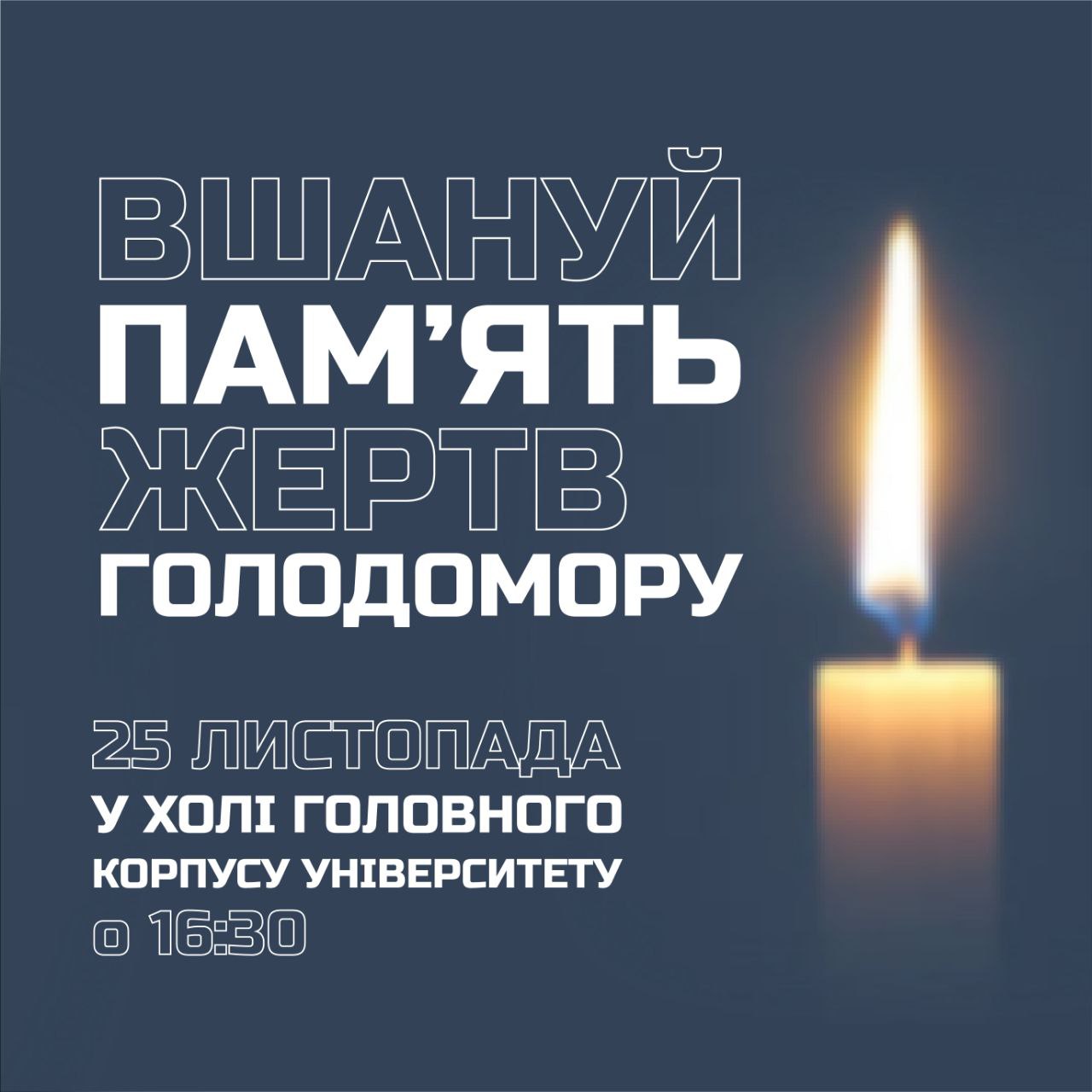 Запрошуємо студентів, аспірантів, викладачів, працівників університету долучитися до акції пам'яті жертв усіх голодоморів в Україні.