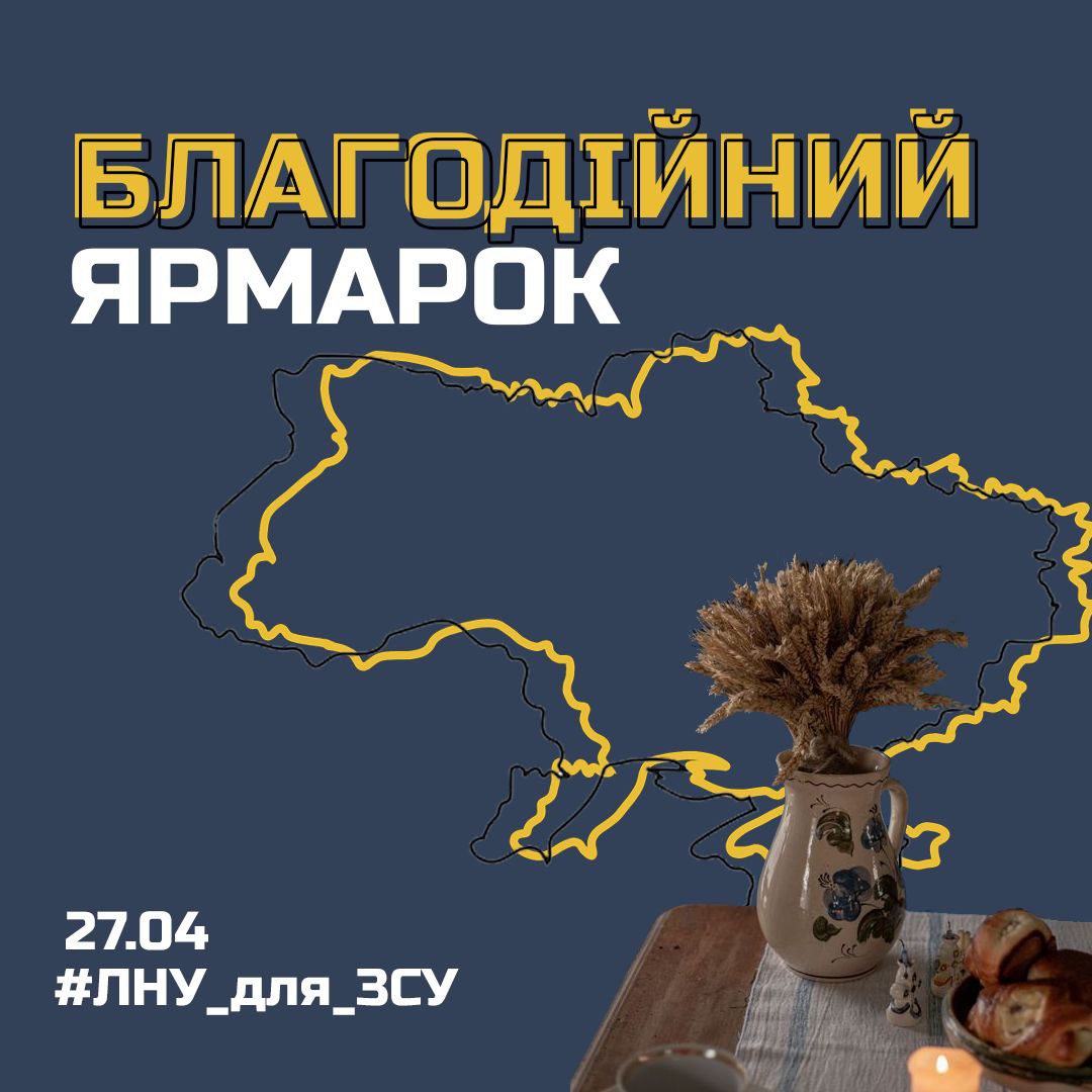 Чекаємо вас 27 квітня на благодійному ярмарку #ЛНУ_для_ЗСУ, де кожен франкотик може наблизити українську перемогу і долучитись до боротьби з російським злом! Бо донатами переможемо!