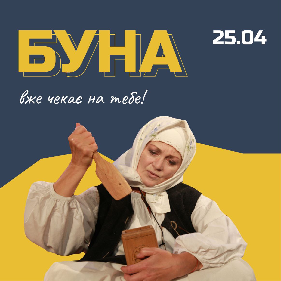 🔍 Про що ця вистава? Головна героїня - бабця Буна, що живе на межі епох і має свою незмінну власну думку про бідних і багатих, зло і добро… Її доросла, проте ще доволі юна онука Орися не хоче жити за правилами бабусі, тому у виставі гостро розкривається проблема конфлікту поколінь. Також виставу огортає атмосфера автентичних звичаїв, забобонів, звичаїв і таємниць 🤫