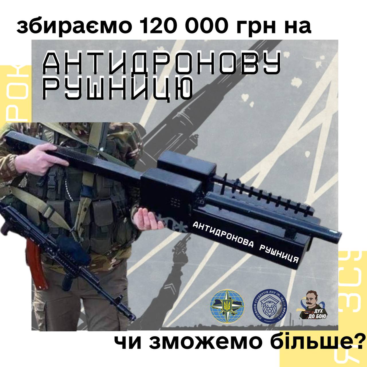 🎯Отже… оголошуємо, що головна ціль благодійного ярмарку - зібрати кошти, а саме 120 000, МІНІМУМ на ОДНУ антидронову рушницю, яка поїде в найгарячіший напрямок, допоможе ЗСУ у боротьбі з ворожими дронами та врятує їхнє життя! Більше інформації щодо рушниць - у профілі нашого партнера-фонду - @isof_foundation.