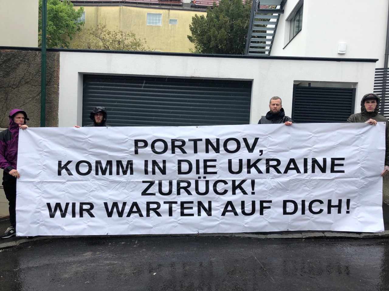 Сьогодні біля його будинку в Австрії хлопцями з Речового доказу було проведено акцію. На плакаті написано «Портнов, повертайся в Україну. Ми на тебе чекаємо.»