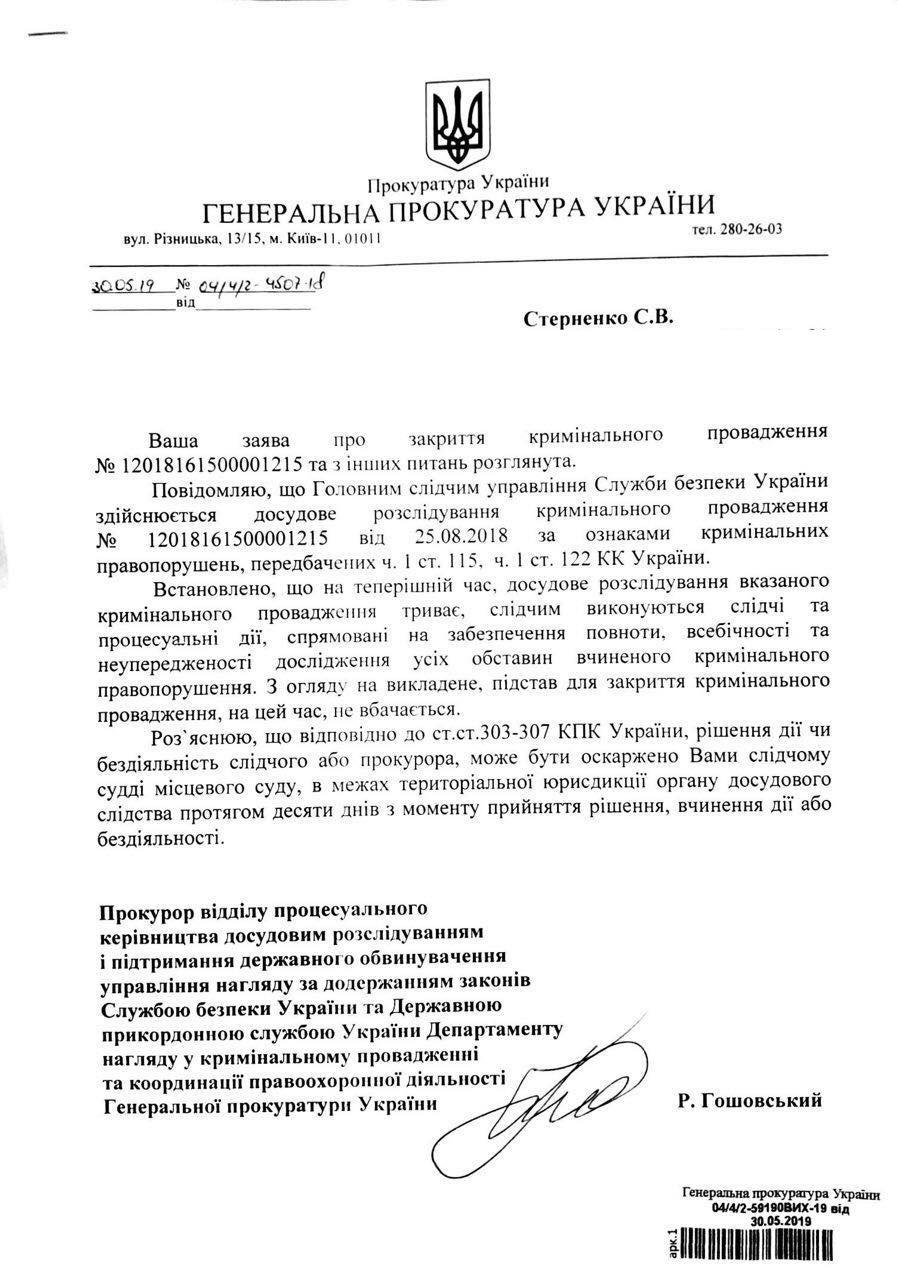 Сьогодні я отримав відповідну ухвалу Шевченківського суду м. Києва, якою зобов‘язано СБУ відкрити відповідне кримінальне провадження та внести відомості до ЄРДР.