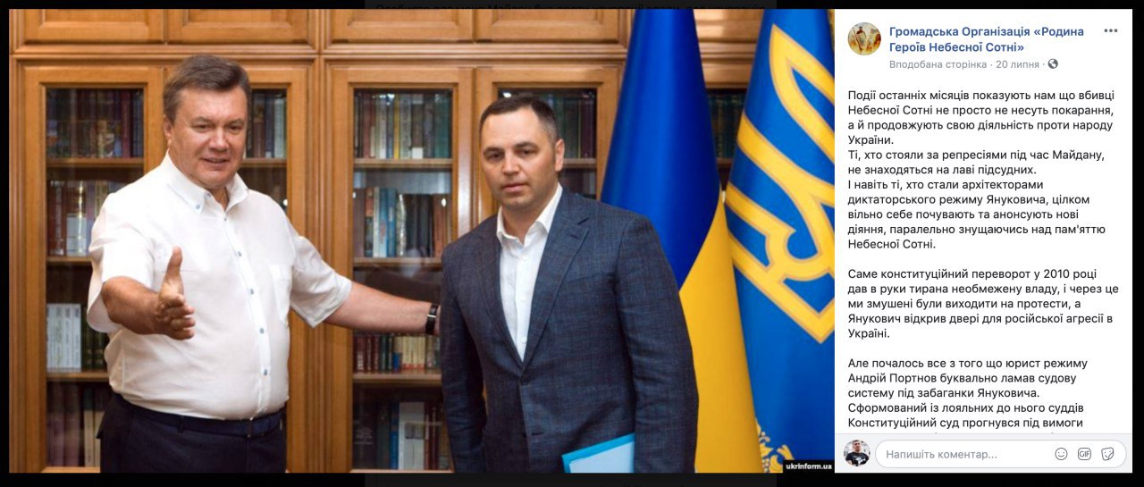 Громадська організація «Родина Героїв Небесної Сотні» звернулась до очільника СБУ Баканова та до генпрокурора Луценка із заявою про злочини АНдрія Портнова. Допомагали йому в цьому Олена Лукаш та Лавринович