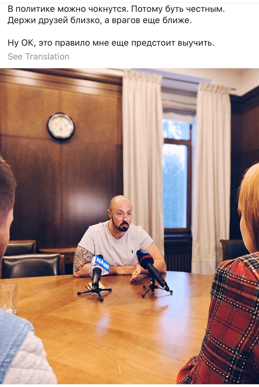 До поста він прикрипів фото, де він дає інтерв‘ю в кабінеті містра Скалецької.