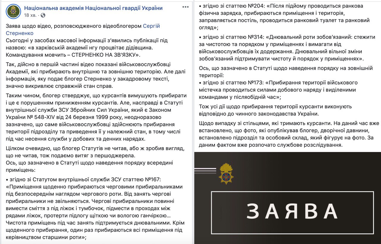 Національна академія Національної гвардії України відреагувала на моє відео, у якому показано як знущаються з курсантів, які там навчаються.