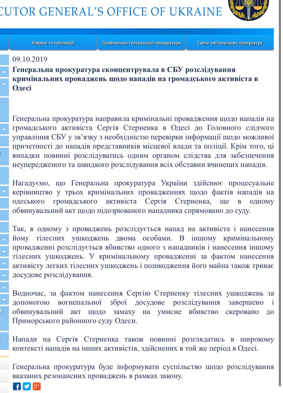 ГПУ роз‘яснила чому всі провадження щодо нападів на мене передано до СБУ👇🏻