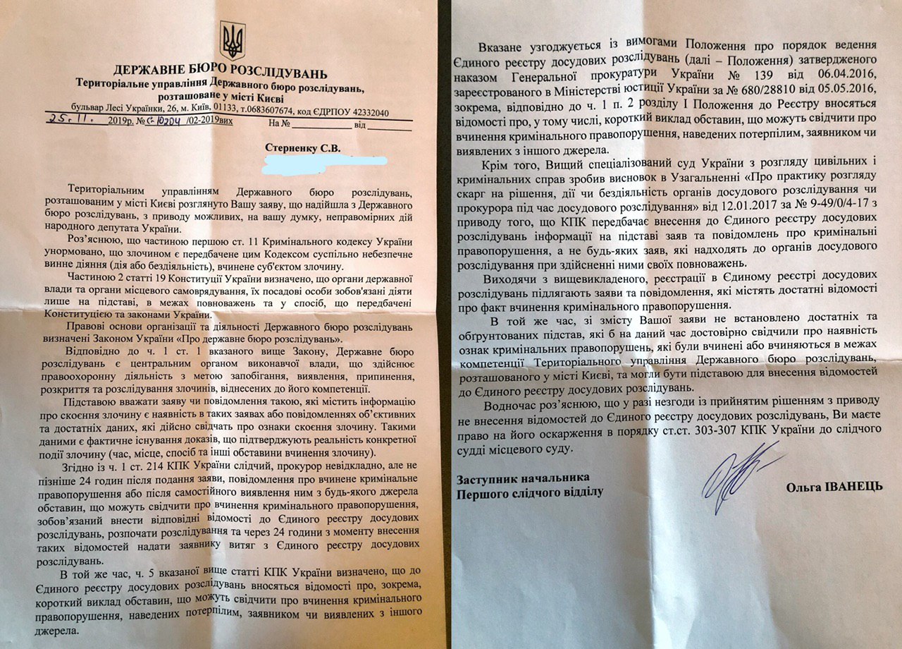 Я звернувся до ДБР із заявою про вчинення злочину, і ось отримав відповідь.