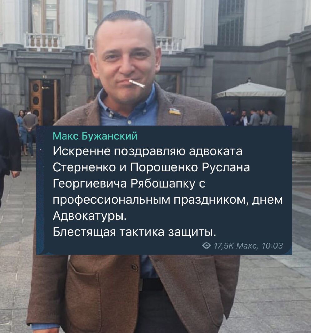 Повідомляю народному депутату Максиму Бужанському, мажоритарнику від Слуги народу, що я подав на нього до Печерського суду позов про захист честі та гідності за його недепутатські вислови.
