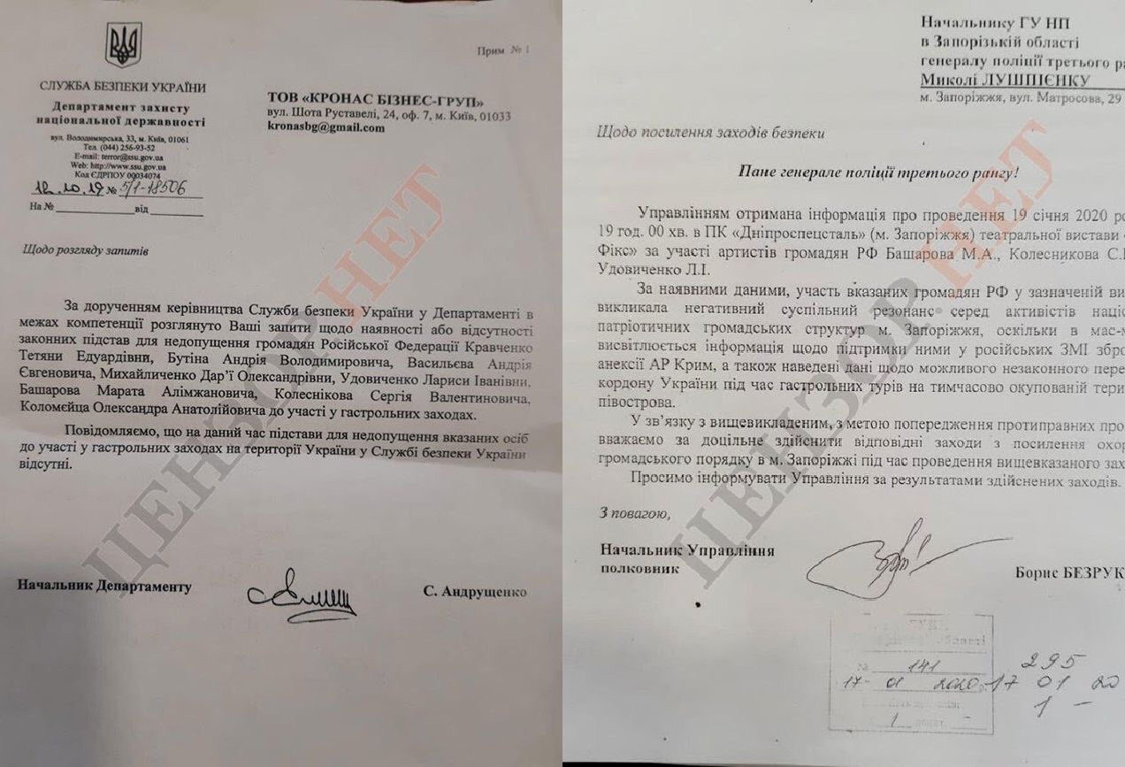СБУ не лише не забороняє в‘їзд в Україну росіянам Марату Башарову та Сєргєю Колєснікову, а й просить поліцію забезпечити належну охорону для гастролерів у Запоріжжі.