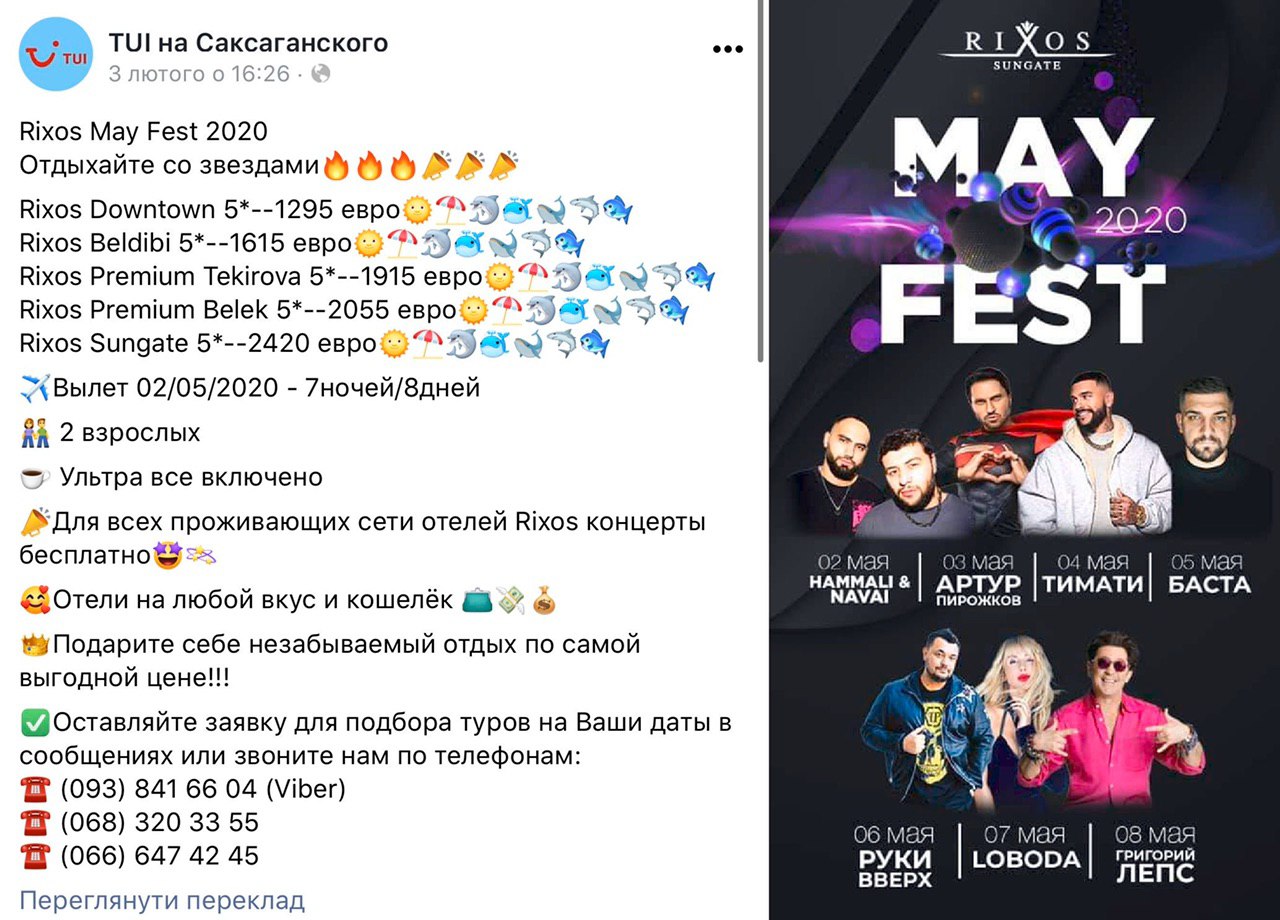 Компанія пропонує поїхати до Туреччини на відпочинок з російськими зірками.