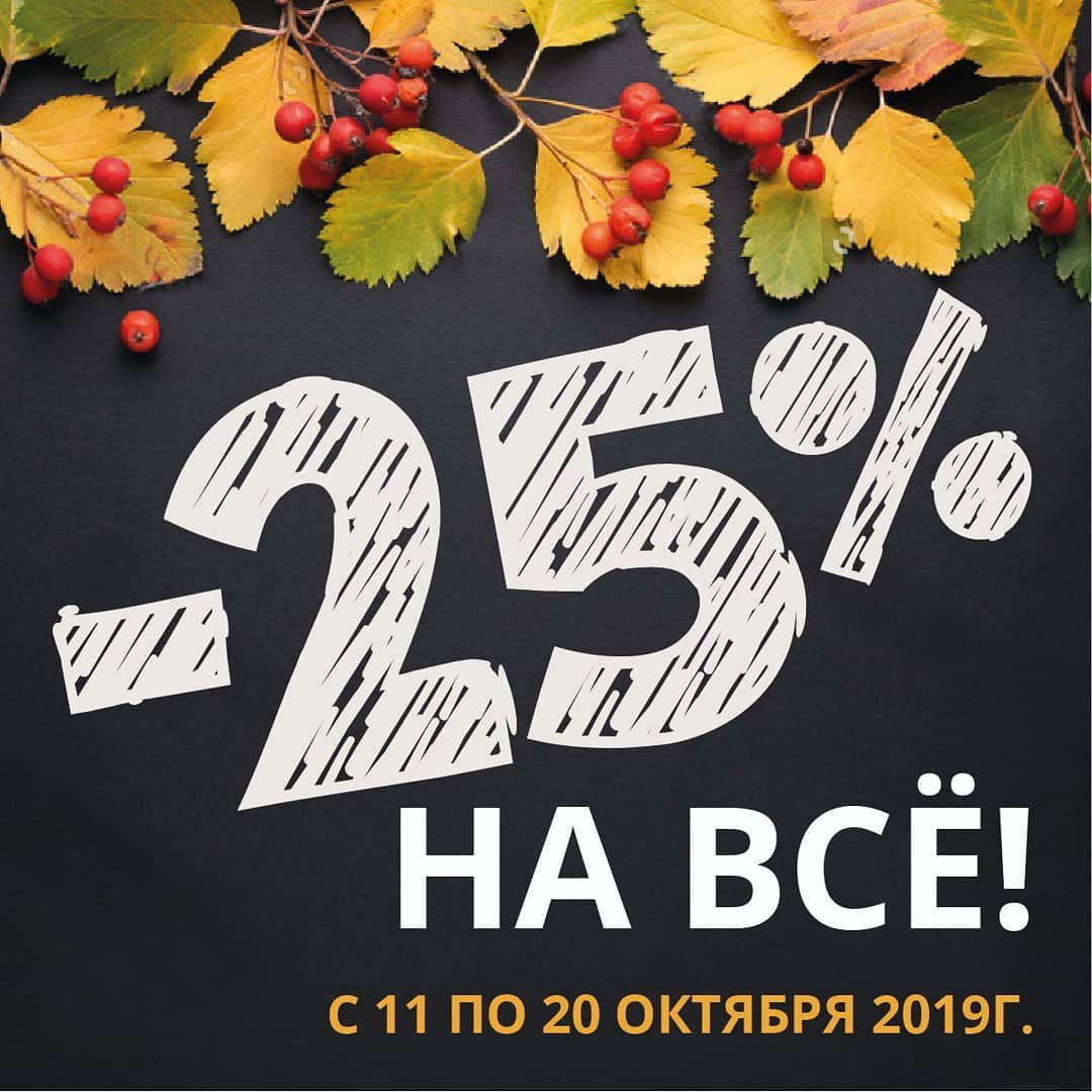 💳 Каждому покупателю на кассе при совершении покупки предоставляется скидка 25% на весь ассортимент.