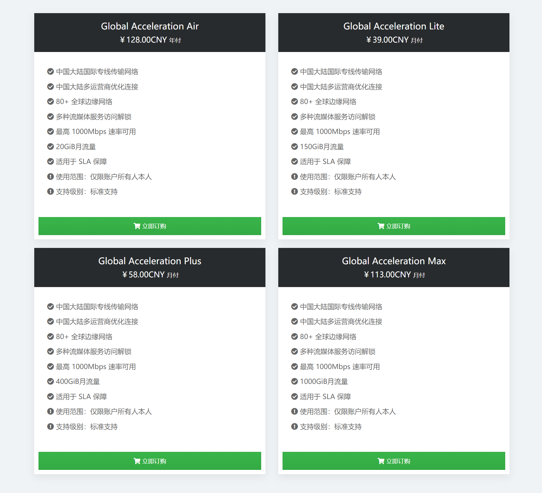 定制线路:企业可选择 Global Acceleration Advanced 套餐。
