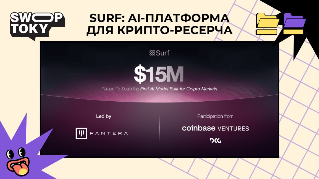Surf — это web-платформа и AI-ассистент, заточенный исключительно под крипторынок. Surf объединяет ончейн-данные, теханализ, соц-сентимент и веб-источники, выдавая структурированные отчёты и понятные инсайты в реальном времени.