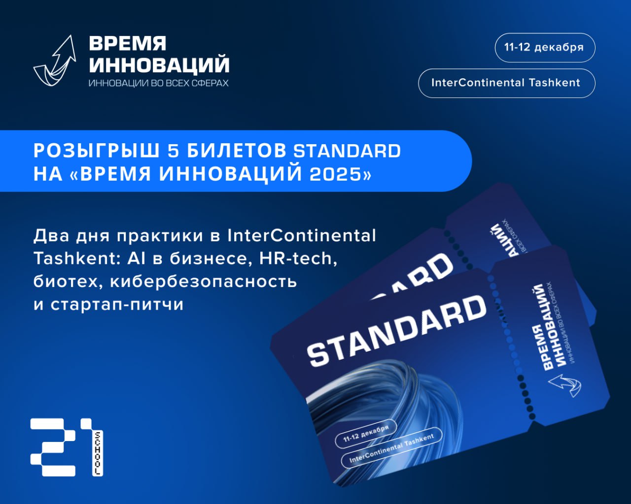 🎁 Розыгрыш 5 билетов Standard на «Время инноваций 2025» (11–12 декабря, Ташкент)