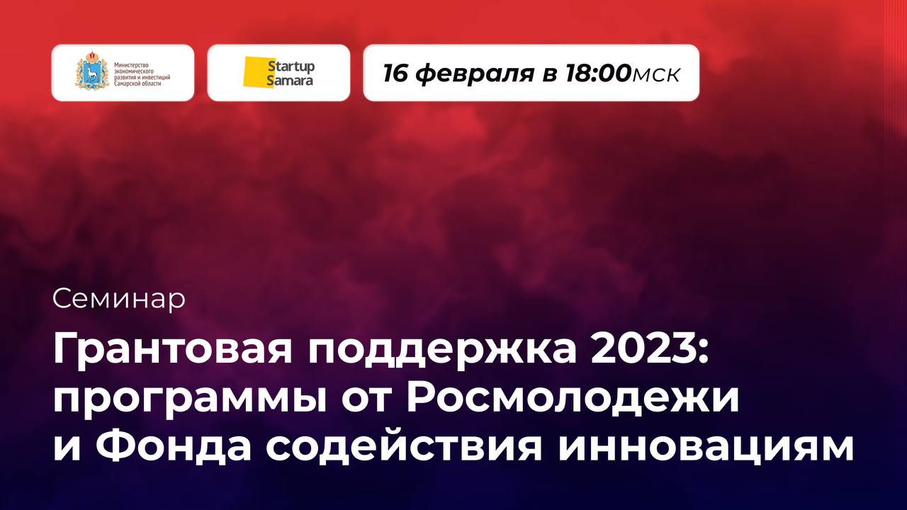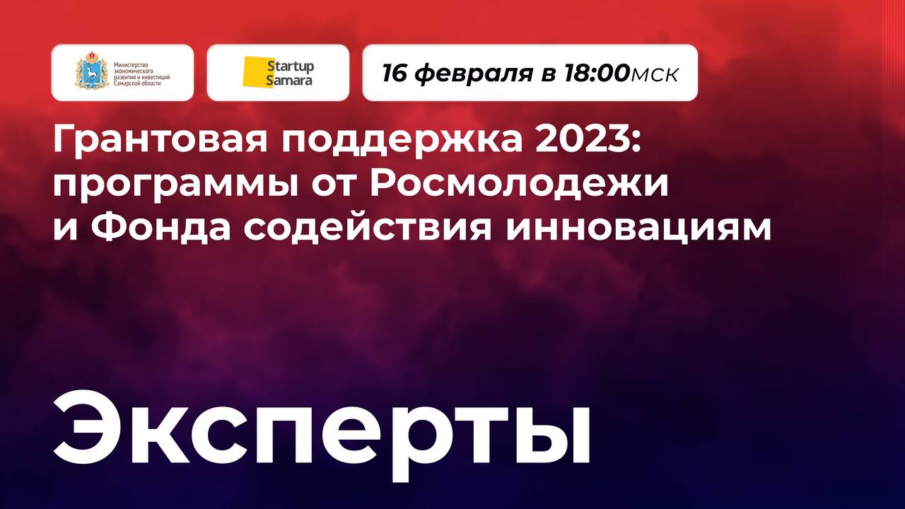 Чтобы в новом году вы не упустили ни одной возможности, 16 февраля команда StartupSamara проведет образовательный онлайн-семинар «Грантовая поддержка 2023: программы от Росмолодежи и Фонда содействия инновациям». Вместе с приглашенными экспертами мы подробно разберем особенности участия в грантовых конкурсах в 2023 году: