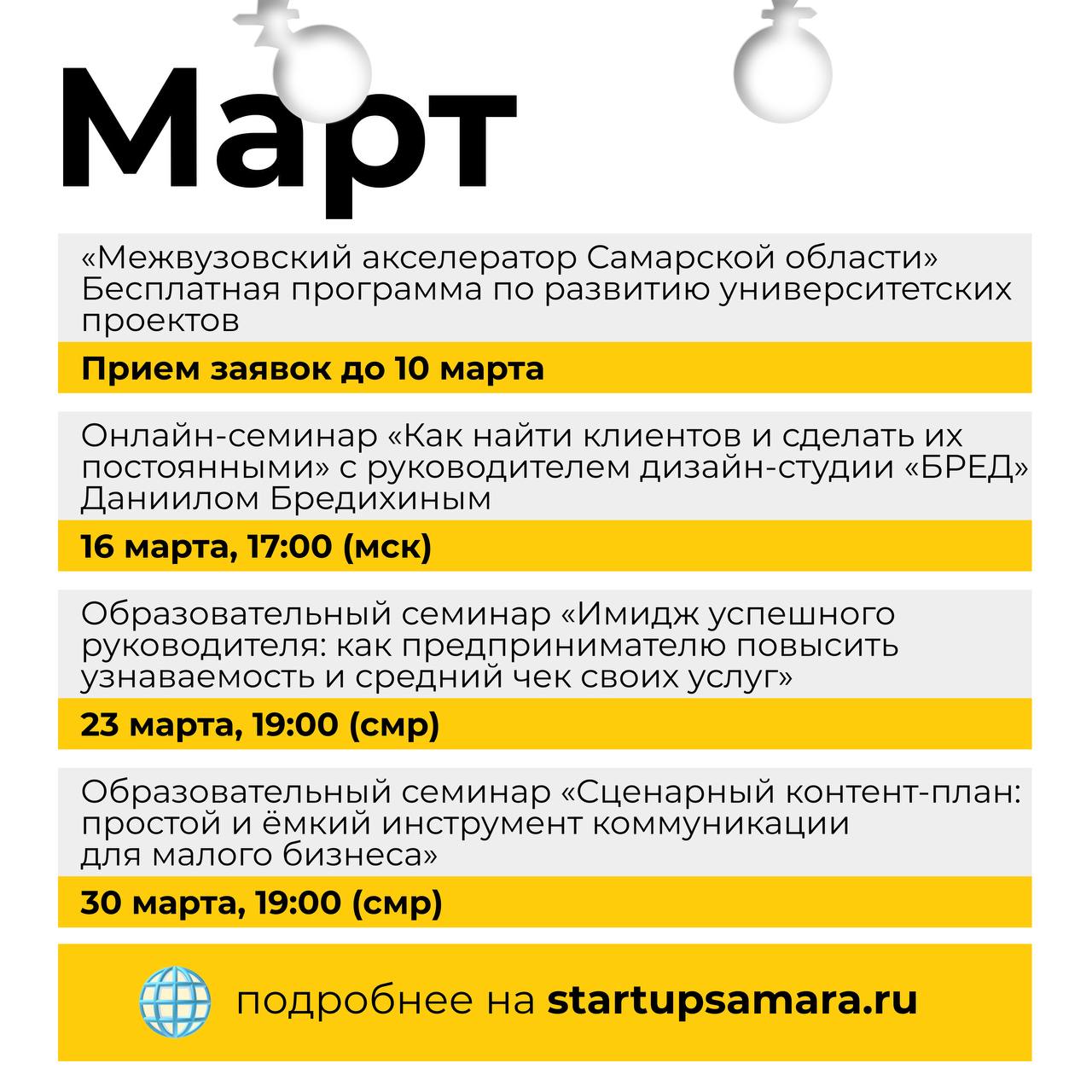 Афиша мероприятий StartupSamara: МАРТ🌿
