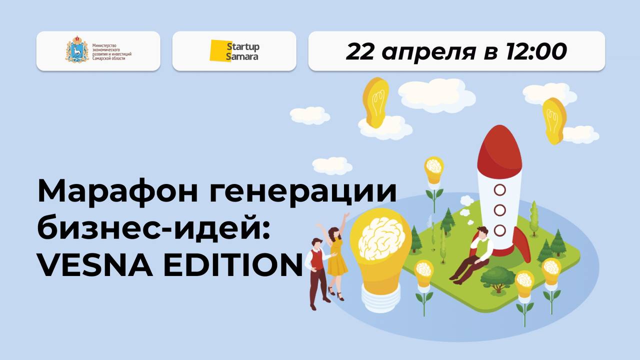 22 апреля команда StartupSamara в партнерстве с центром «Мой Бизнес» проведет воркшоп по созданию и тестированию идей для бизнеса — «Марафон генерации бизнес-идей: VESNA EDITION».