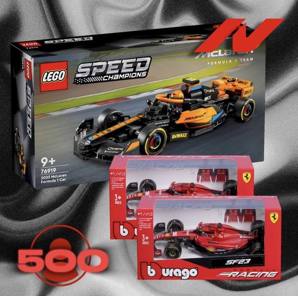 🔥Дорогие друзья! В честь знаменательной цифры в 500 подписчиков на канале (за что вам огромное спасибо), мы решили разыграть для вас набор LEGO от нынешних претендентов на кубок конструкторов в лице McLaren в качестве главного приза, и модели Ferrari SF-23 в качестве второго и третьего мест!