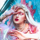 один из самых сложных по задумке и исполнению корсетов коллекции — около месяца работы; в составе натуральный жемчуг, мох, голубой кварц, подвеска из глины и олова и тонна эпоксидки