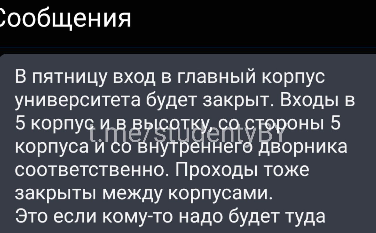 Ещё некоторые изменения в жизни студентов во время приезда главы государств. Телефоны и обувь сдать, на политические темы не рассуждать, заходить с черного входа, деканат от подготовки не отвлекать.