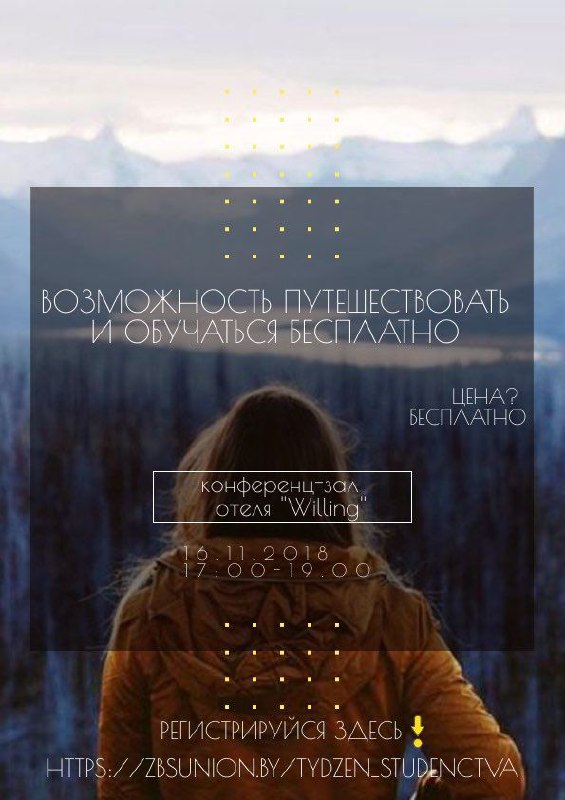 Заўтра святкуецца Міжнародны дзень студэнтаў, з гэтай нагоды запускаем вялікі розыгрыш квіткоў. 10 квіткоў - 10 пераможцаў! Умовы простыя: ✔ Апішы ў каментарах адным словам студэнцкае жыццё і адзнач 2-х сяброў. ✔Падпішыся на @artsiadziba Вынікі падвядзем…
