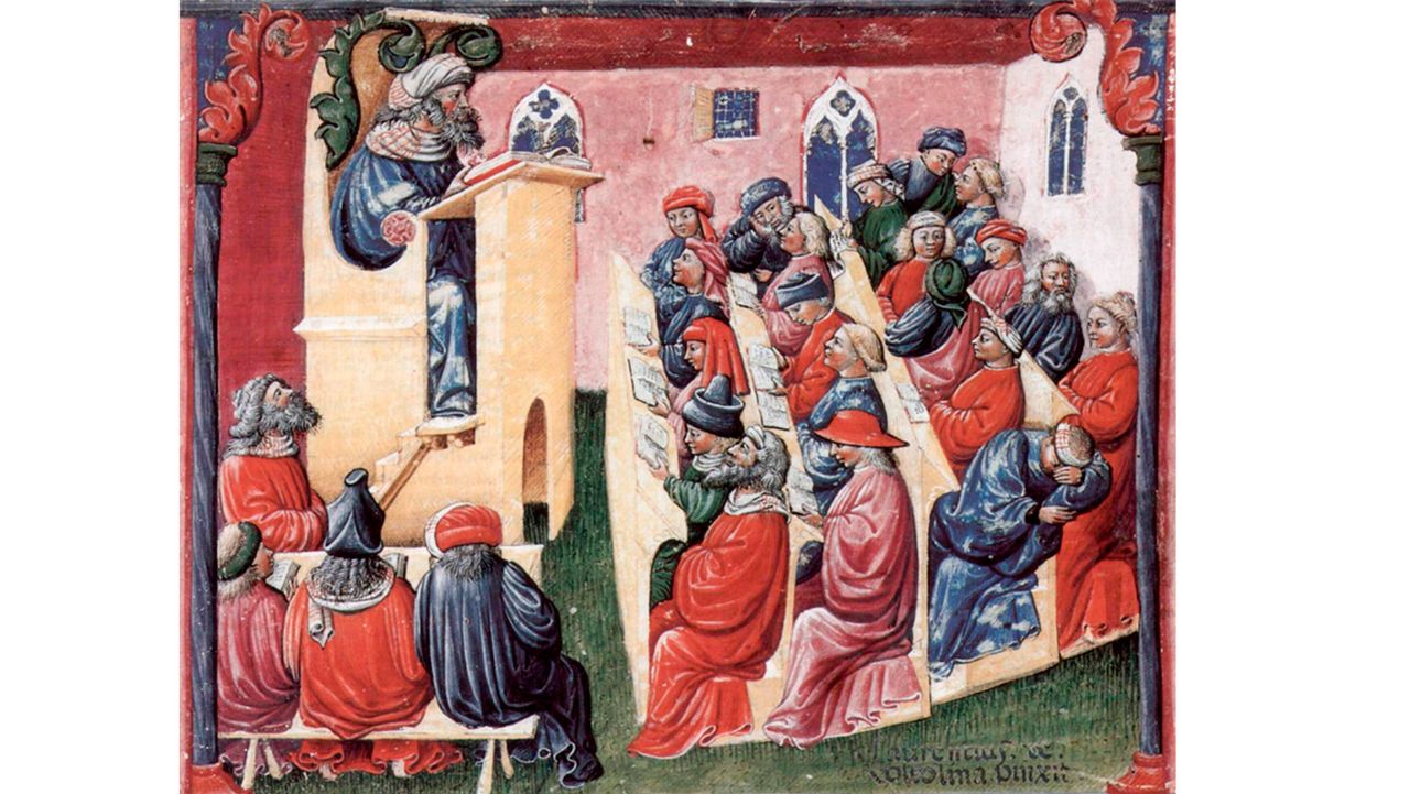 Двери университета в Средние века и эпоху Возрождения были открыты юношам 13−15 лет. Выбрав один из трёх факультетов (теологический, медицинский или юридический), школяр (так называли учащихся в Средние века) определял свой путь в светлое будущее. Грамотные люди в те времена ценились на вес золота. Обзавестись выгодными связями, найти себе покровителя или мецената, устроиться при дворе богатого вельможи — вот примерный «план-максимум» для тогдашнего молодого специалиста. Девушкам учиться грамоте было не обязательно: забота о доме и семье — вот их главная задача.