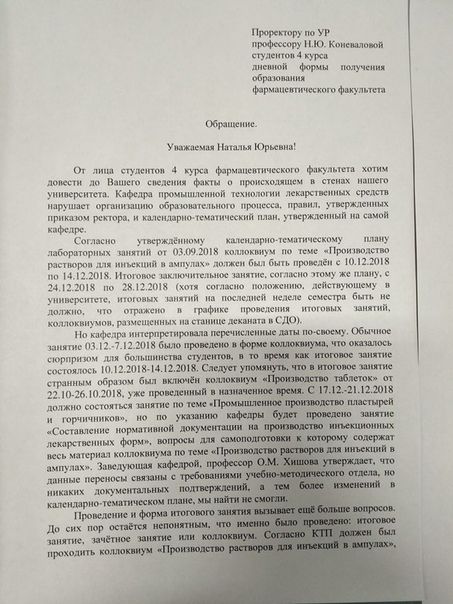 Кафедра промышленной технологии лекарственных средств нарушает учебный процесс и добавляет немного ада в жизнь студентов.