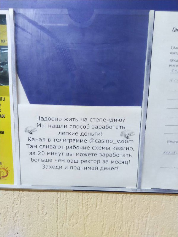 Интересный факт, чтобы разместить какую-то объявленьице в ВУЗ, нужно разрешение администрации и идеологического отдела. Независимым организациям пройти идеологически-административный экзамен почти невозможно, именно поэтому вы никогда не увидеть на стенде инфу о чем-то действительно интересном🤷