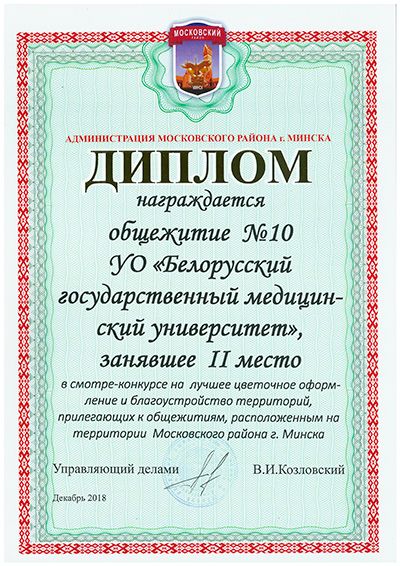 10-ое общежитие БГМУ заняло 2 место по благоустройству территории в городском конкурсе на лучшее общежитие.