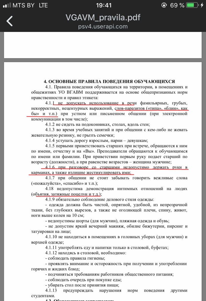 В Витебской государственной академии ветеринарной медицины какие-то дикие правила внутреннего поведения 😮