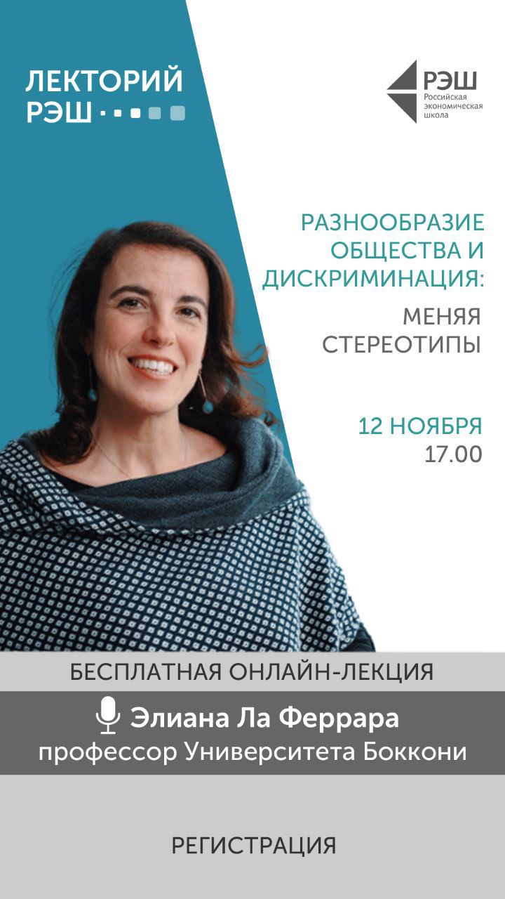 12 ноября в 17:00 открытая онлайн-лекция «Разнообразие общества и дискриминация: меняя стереотипы», проводимая в рамках Лектория Российской экономической школы.