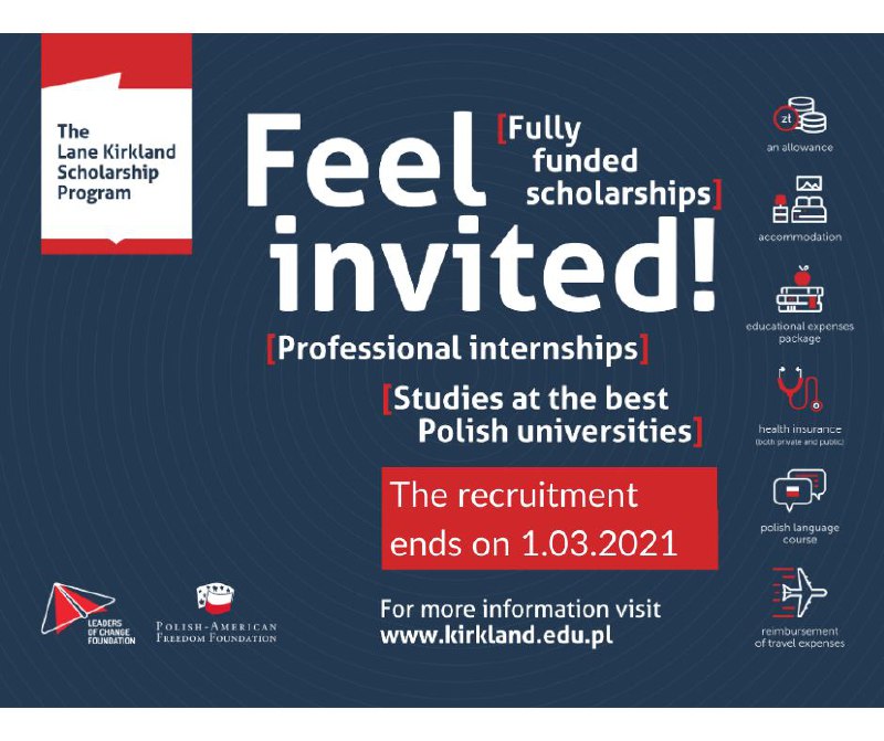🎓СТИПЕНДИИ ИМ. ЛЕЙНА КИРКЛАНДА и Kirkland Research в Польше в 2021/2022 учебном году