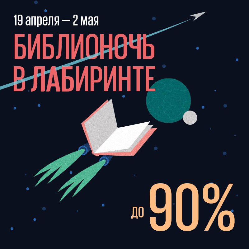 Если вы ждали знак свыше, чтобы, наконец, зайти в книжный, то это он. Где? Да в «Лабиринте» же! С 19 апреля по 2 мая в интернет-магазине «Лабиринт» пройдет акция «Библионочь-2021», где вы сможете КУПИТЬ КНИГИ СО СКИДКОЙ ДО 90%, выиграть сертификаты номиналом до 3000 рублей и поучаствовать в розыгрыше комплектов книг и сувениров.
