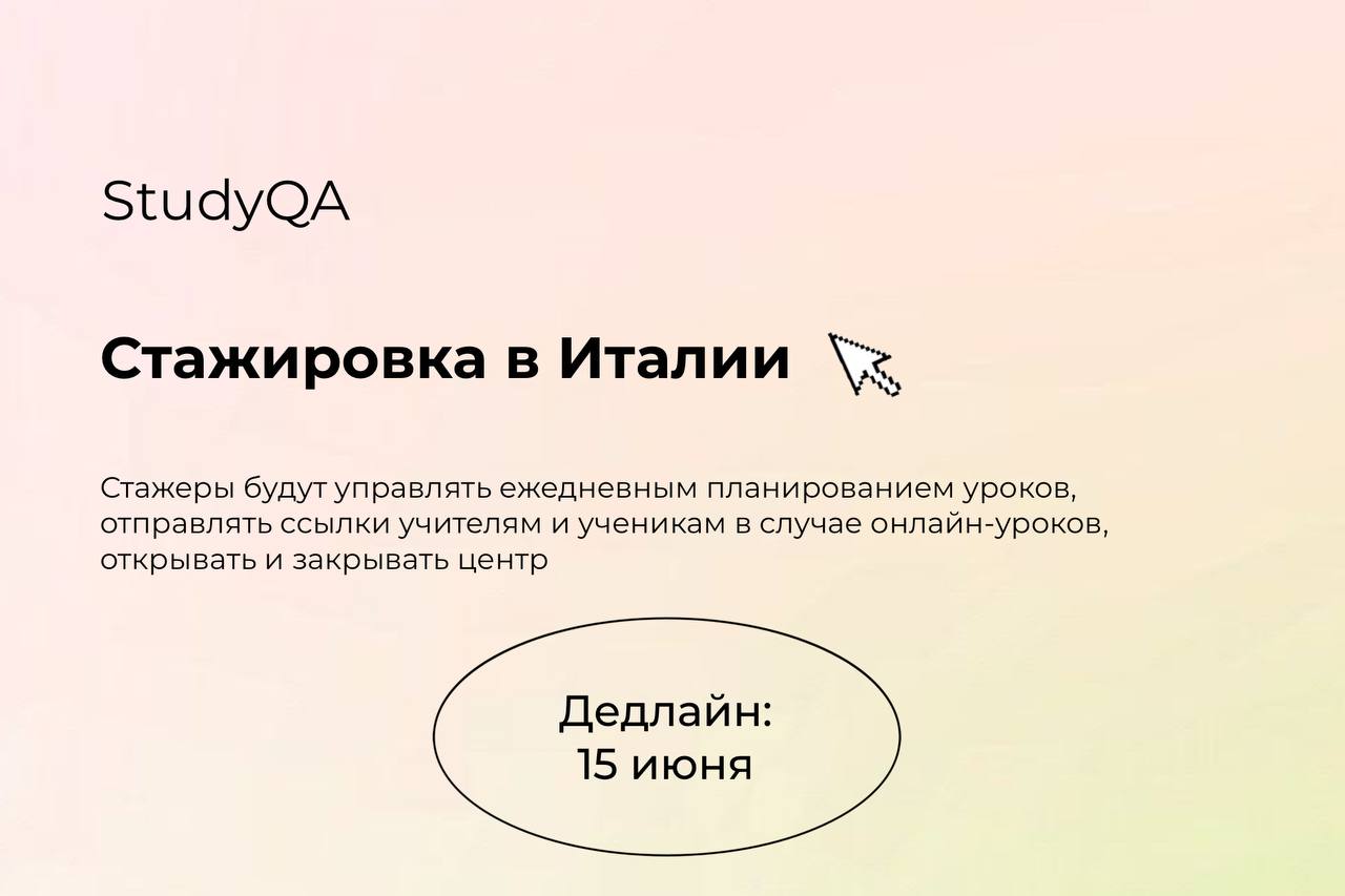 Культурный центр Convent Center приглашает на стажировку длительностью 4 месяца молодых людей, которые хотят работать в сфере иностранных языков, мультикультурализма и образования. Центр ищет того, кто поможет управлять административным аппаратом центра. Стажеры будут управлять ежедневным планированием уроков, отправлять ссылки учителям и ученикам в случае онлайн-уроков, открывать и закрывать центр, вести журнал посещаемости, помогать в организации экзаменационных сессий. Покрываются расходы на проживание, питание, транспорт. Нужно знать английский язык на уровне В1 и быть инициативной личностью.