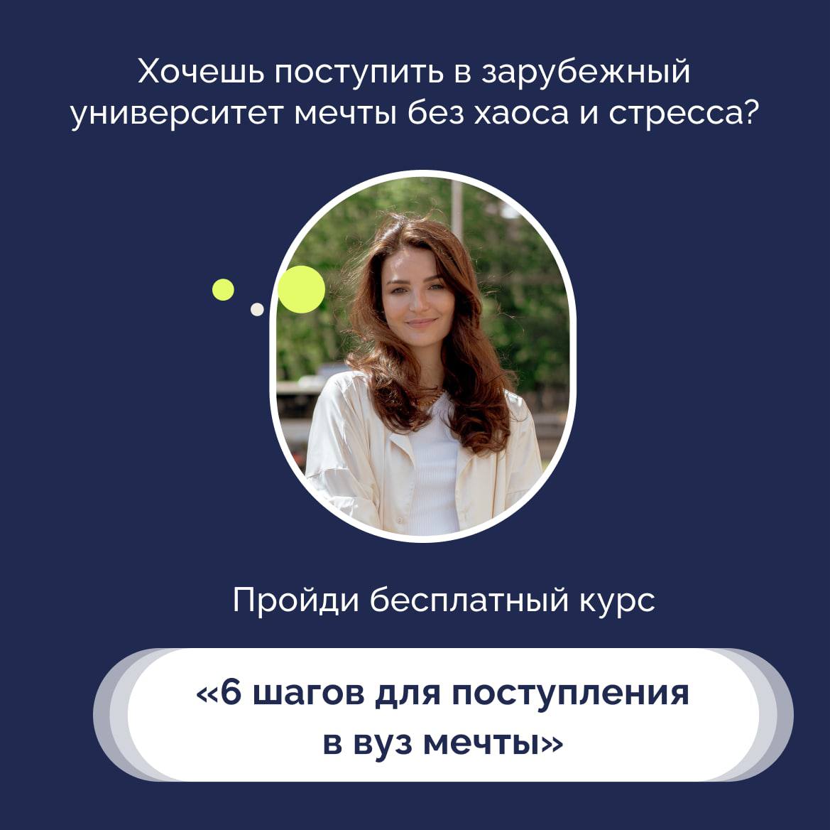 Чтобы узнать о ключевых этапах поступления за границу, приходи на наш бесплатный курс «6 шагов для поступления в вуз мечты».