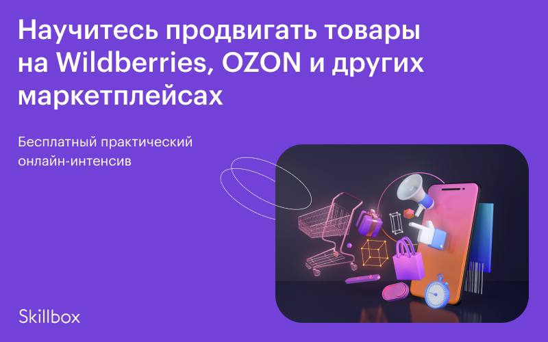🎁 Сразу после регистрации отправим вам чек-лист «Как правильно оформить карточку товара на маркетплейсах». Дошедшим до конца интенсива — в подарок электронная книга Адель Линн «Сила эмоционального интеллекта», которая поможет научиться управлять своими эмоциями. Участвуйте, задавайте вопросы и получите сертификат на 10 тысяч рублей на любой курс Skillbox.