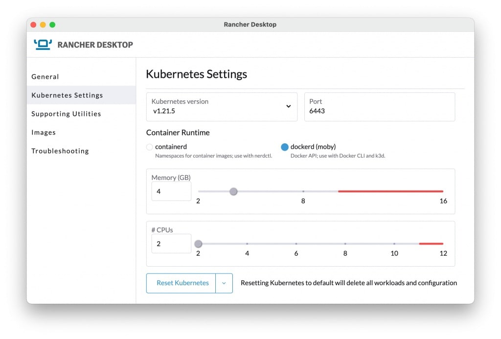 Rancher Desktop позволяет выбрать определённую версию Kubernetes для использования, протестировать работу своих контейнеров с различными версиями Kubernetes, мгновенно запустить контейнеры без регистрации в сервисах Kubernetes, собрать, получить и разместить образы контейнеров и развернуть разрабатываемое приложение в контейнере на локальной системе.
