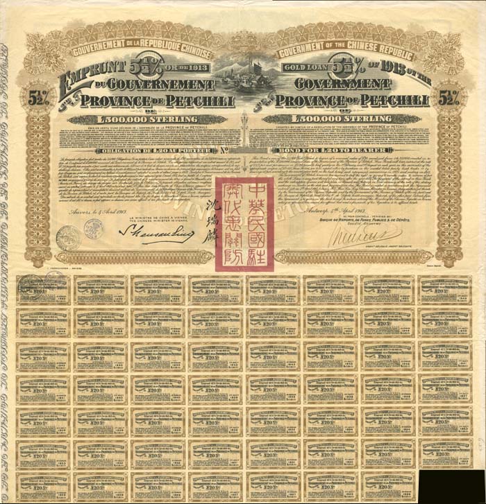 «Китайское правительство внесет в фунтах стерлингов сумму, составляющую девять миллионов металлических рублей, то есть один миллион четыреста, тридцать одну тысячу шестьсот шестьдесят четыре фунта стерлингов, два шиллинга, братьям Беринг и К° в Лондоне»