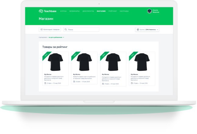 У нас появился новый функционал — магазин наград. Как это работает: сотрудники учатся, набирают баллы, получают за это монеты, их можно тратить как раз в магазине наград.